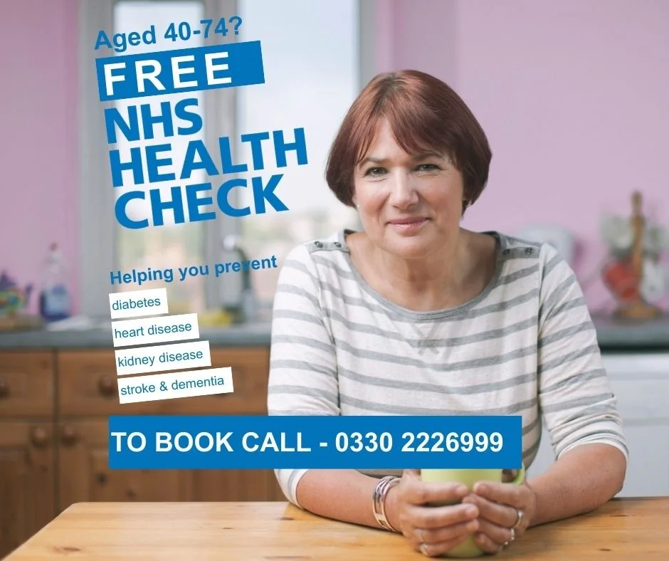 Are you aged 40 - 74? even though you might be feeling great, if you ae over forty you may be at risk of heart disease, stroke, kidney disease, diabetes or dementia. These FREE NHS health checks can help you reduce these risks and make sure you stay healthy,